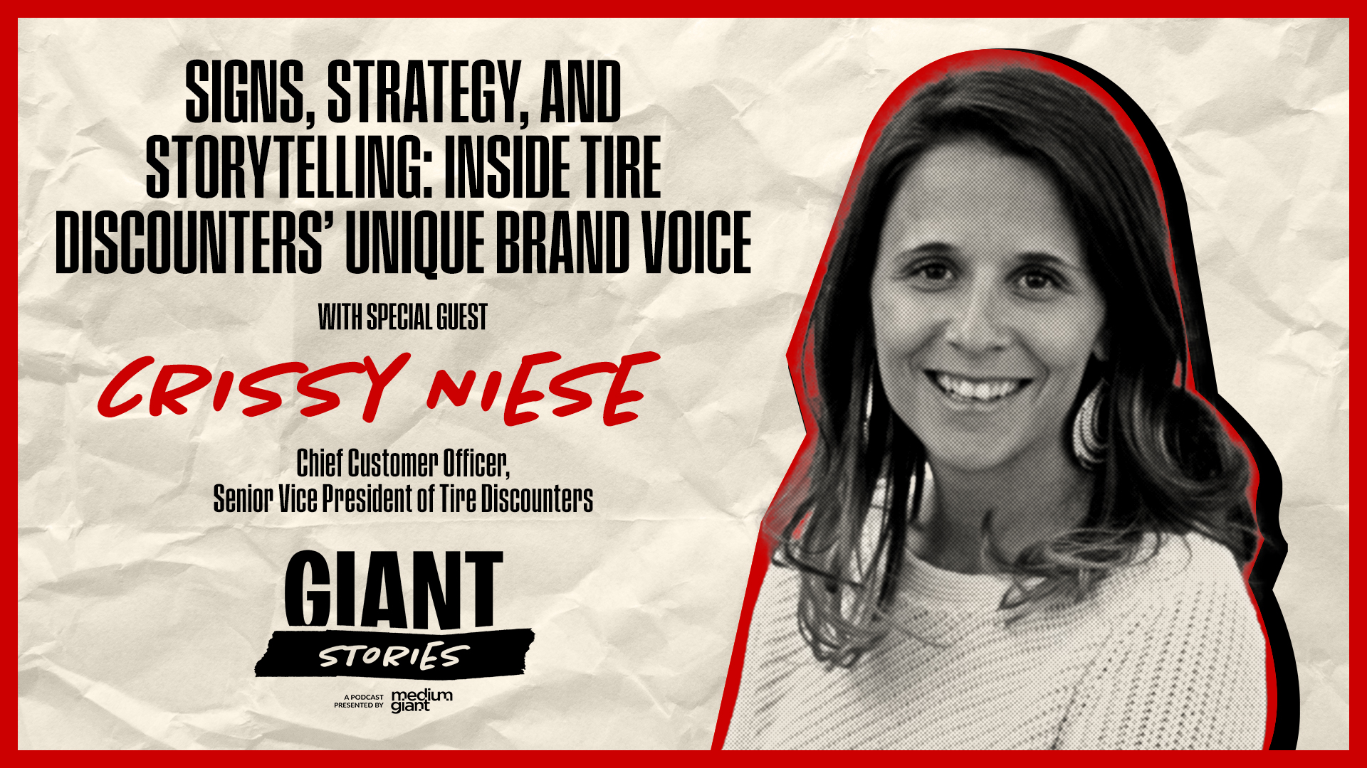 Ethos that shows up wherever you see their marketing across their markets. By the way, go to Reddit, just hit tire discounters, store signs, and just, you’ll have a few laughs. And, uh, Chrissy, it actually really shows the personality of the brand, but we’ll get to that in a little bit. And Chrissy is right in the thick of that or of orchestrating all that storytelling.