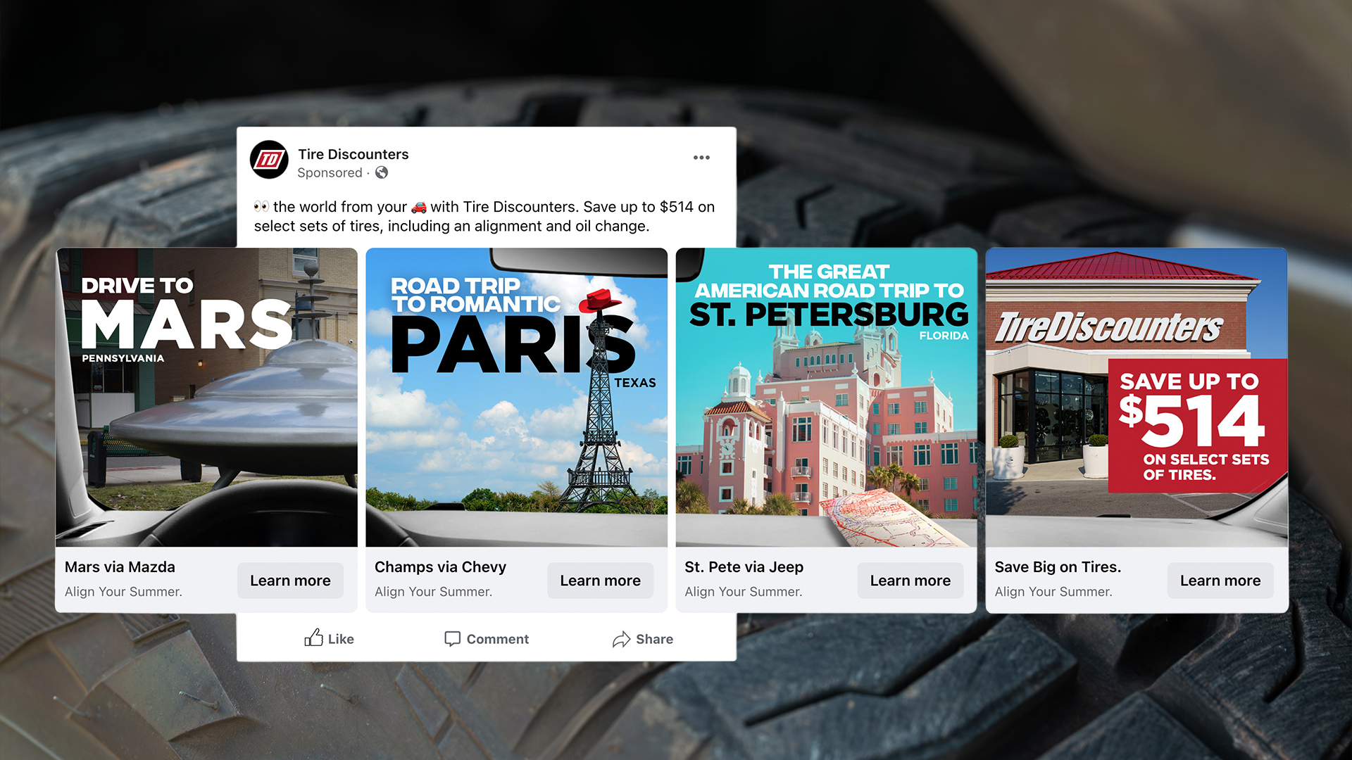 Tire Discounters challenged us to increase car count by evaluating, implementing, and optimizing across all paid and owned channels. Our job? Efficiently and effectively drive more customers — both new and returning — to choose Tire Discounters for their tire and automotive service needs.